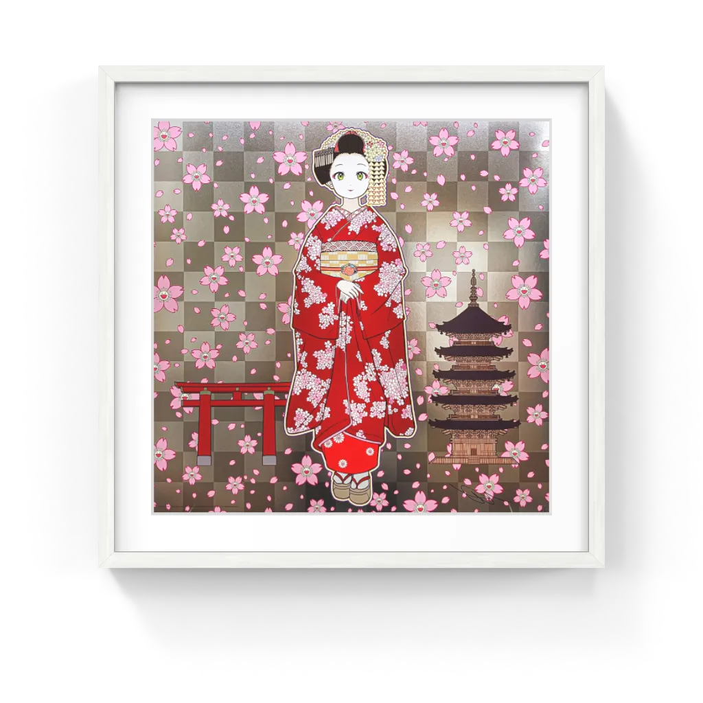 Takashi Murakami - Maiko in Kyoto, Cherry Blossoms on Red, 2024 - Pinto Gallery